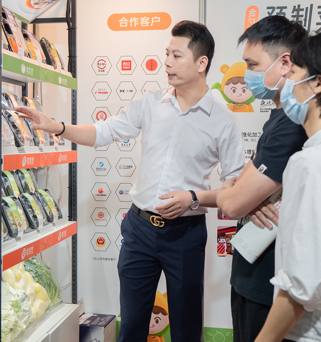 廣東中膳金勺子食品集團(tuán)有限公司以粵字號(hào)農(nóng)業(yè)品牌“金勺子預(yù)制菜”亮相展會(huì),推出包裝鮮切菜、生鮮半成品、快手菜、火鍋菜等系列營(yíng)養(yǎng)便捷、美味健康的新品,吸引無數(shù)人前來參觀交流。