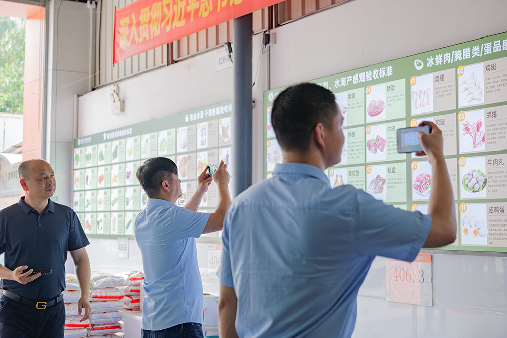 研學(xué)團(tuán)一行在我司相關(guān)人員陪同下先后參觀了餐飲項(xiàng)目、預(yù)制菜生產(chǎn)車間、食材配送大廳、食品安全檢測(cè)中心等。