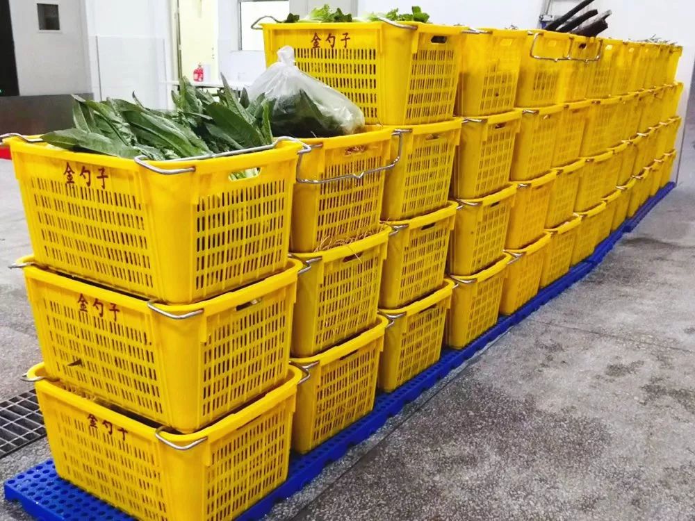 經(jīng)由檢驗(yàn)合格的蔬菜會(huì)被送往中膳金勺子配送中心,由分揀員負(fù)責(zé)進(jìn)行下貨、歸位、分揀、清洗、裝框的工作。中膳金勺子制定嚴(yán)格的分揀標(biāo)準(zhǔn),不合格的蔬菜會(huì)第一時(shí)間放入淘汰區(qū),堅(jiān)決淘汰品相不佳的蔬菜,而對(duì)于葉類蔬菜,則會(huì)將爛掉、碎掉、黃掉的葉子剝?nèi)?,切除帶泥的部分。最后,分揀清洗完成的蔬菜?huì)進(jìn)行稱重,裝入安全無(wú)毒的蔬菜框,等待裝車配送。