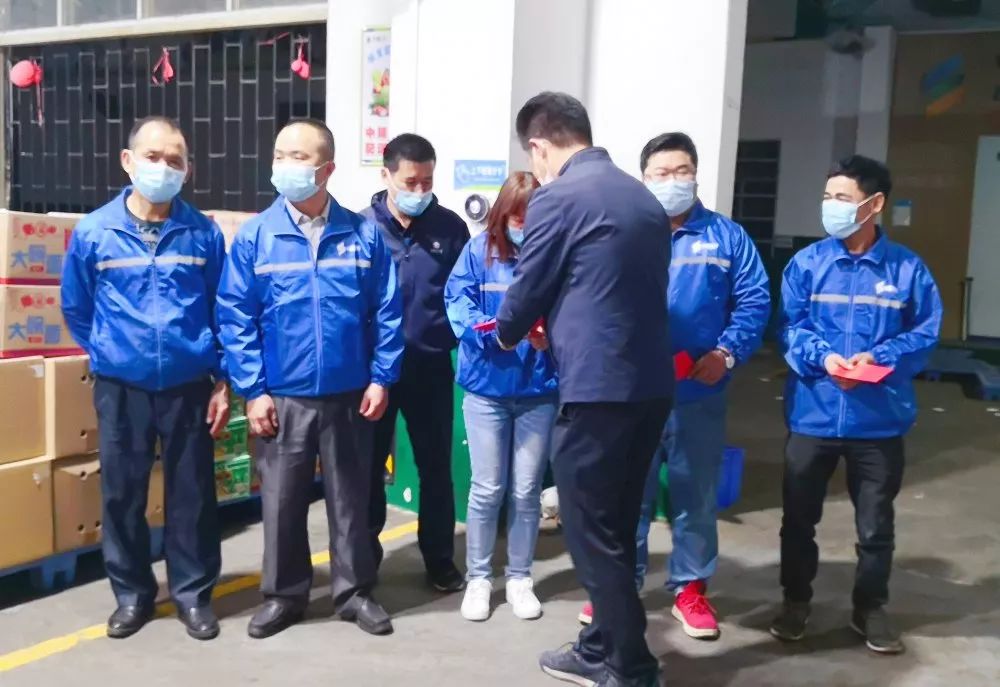 新春佳節(jié),食材配送部有部分員工卻放棄返鄉(xiāng)與家人團(tuán)聚的機(jī)會(huì),繼續(xù)留守廣州、江門等地。正月初三,事業(yè)部其他員工也紛紛回到各自的崗位。中膳金勺子食品集團(tuán)董事長(zhǎng)黃金盾和江門分公司總經(jīng)理黃文強(qiáng)對(duì)提前返崗的每位員工送上了慰問(wèn)與關(guān)懷,并派發(fā)開工利是。
