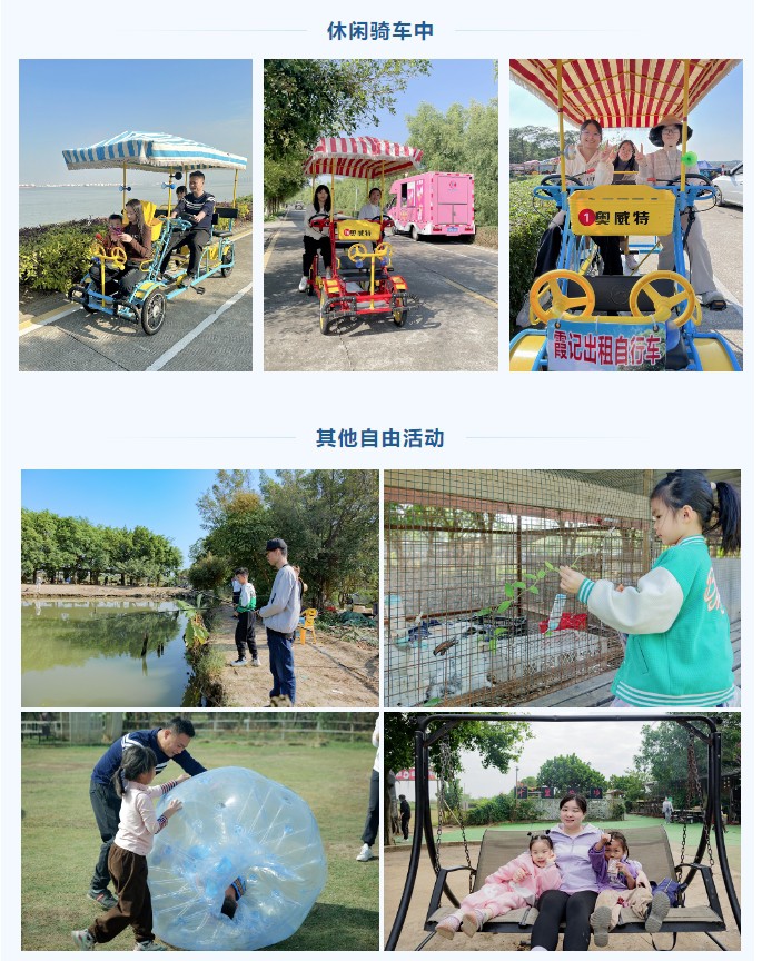 下午,大家在農(nóng)場內自由活動。體驗卡丁車、釣魚、騎車游海鷗島、捕魚、打野戰(zhàn)等豐富多彩的活動,享受大自然的恩賜,度過一段愉快的時光。