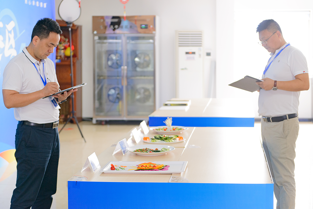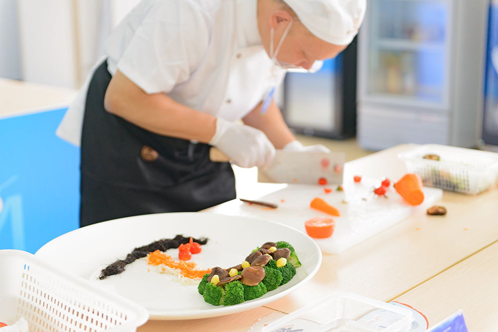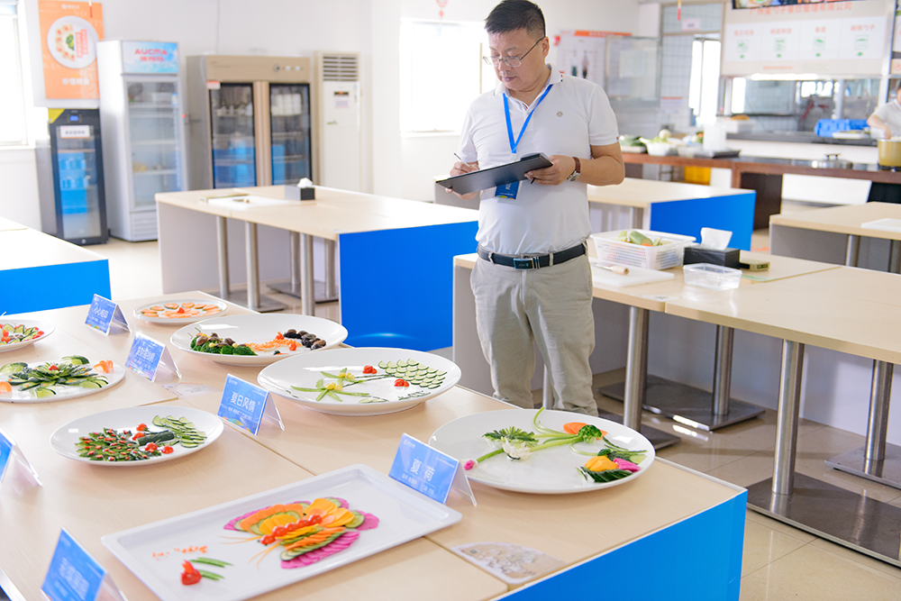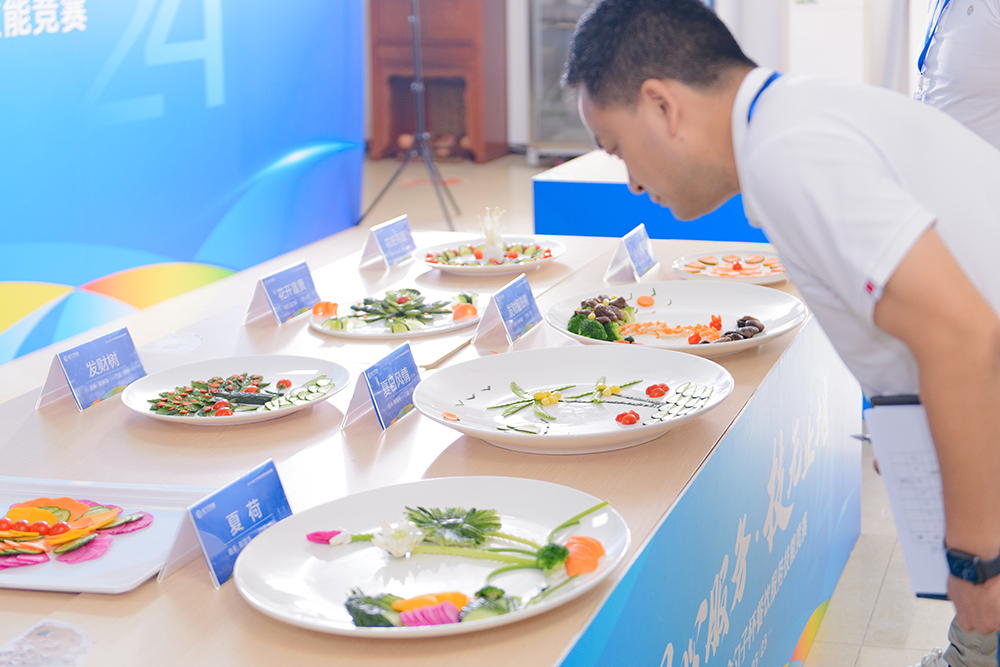筆試結(jié)束后,素菜拼盤競(jìng)賽更加精彩紛呈。素菜拼盤比賽現(xiàn)場(chǎng),參賽者們巧手翻飛,色彩豐富的蔬菜在他們的手中變成了一件件精美的藝術(shù)品。每一份拼盤都講述著廚師們對(duì)美食的熱愛(ài),對(duì)生活的理解。