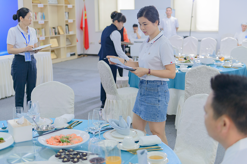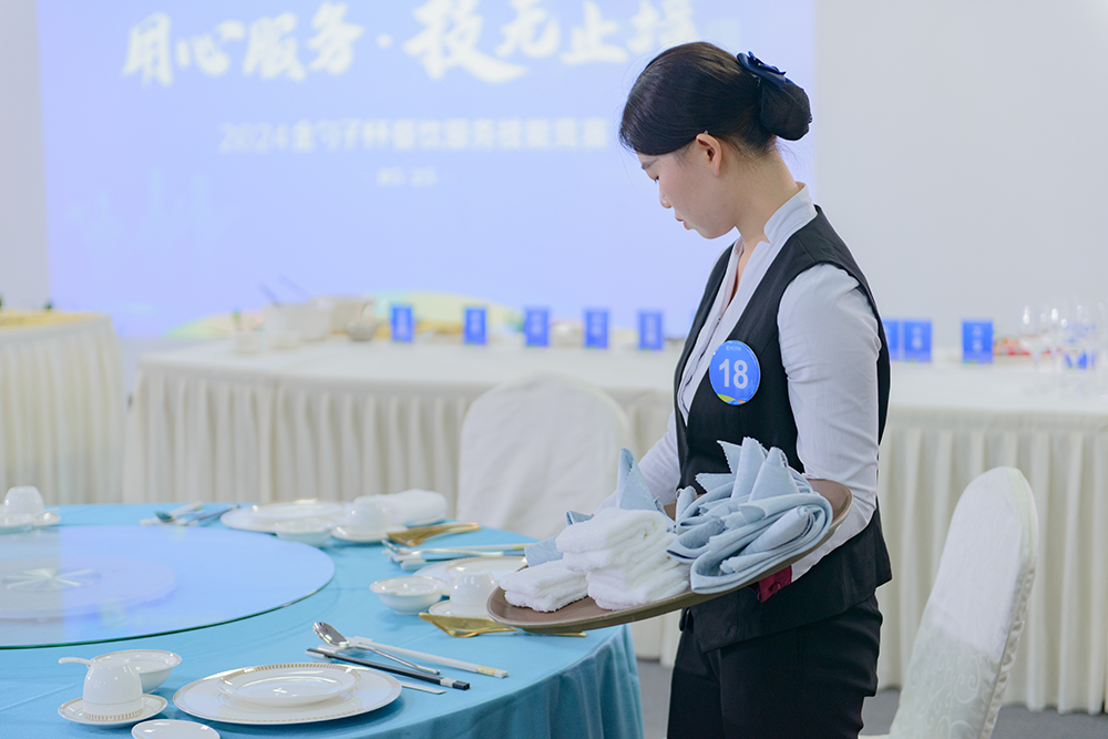 在最后的包房接待服務(wù)技能競(jìng)賽中,參賽者們用熱情的微笑,專業(yè)的禮儀,細(xì)致的服務(wù)贏得了評(píng)委們的贊許。這是一場(chǎng)對(duì)服務(wù)態(tài)度和服務(wù)技巧的雙重考驗(yàn),每一位參賽者都展現(xiàn)了自己最佳的狀態(tài)。
