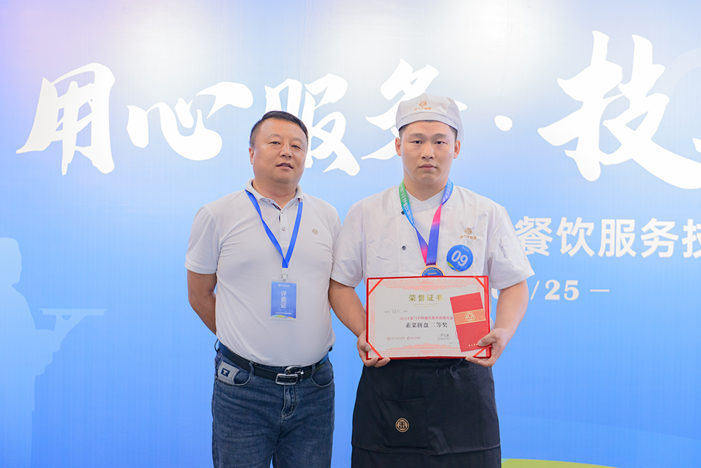 用心服務(wù),技無(wú)止境!巔峰對(duì)決,各顯神通!最后,2024金勺子杯餐飲服務(wù)技能競(jìng)賽在緊張而激動(dòng)的頒獎(jiǎng)儀式中圓滿結(jié)束。獲獎(jiǎng)?wù)邆兪峙鯓s耀,臉上洋溢著自信和喜悅。這是對(duì)他們的肯定,也是對(duì)他們未來(lái)的鼓勵(lì)。