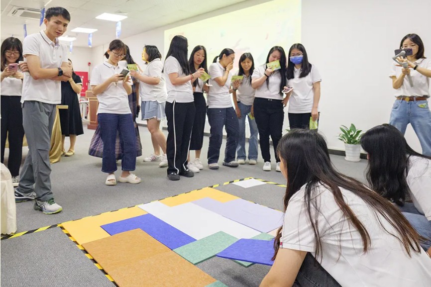 《真人版拼圖》游戲考驗了員工們的團(tuán)隊協(xié)作能力,他們緊密合作,相互配合,充分展現(xiàn)了團(tuán)隊精神。