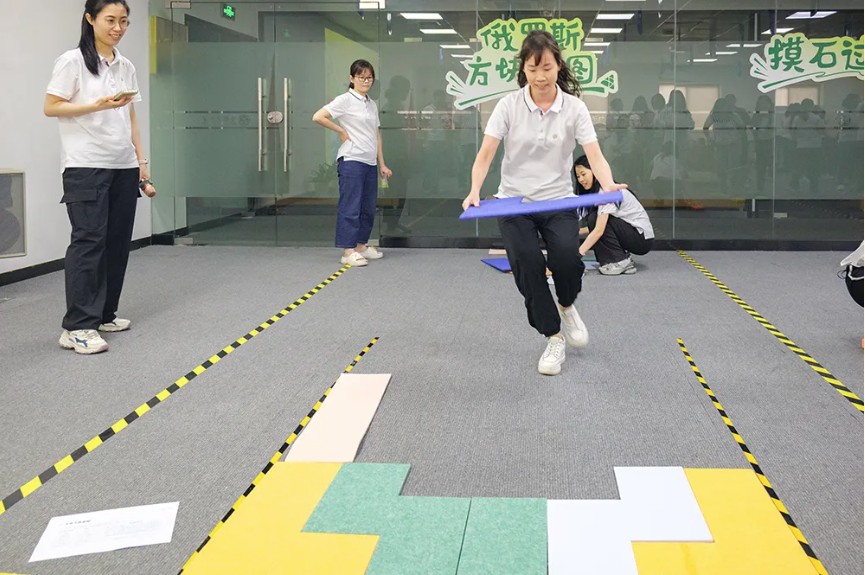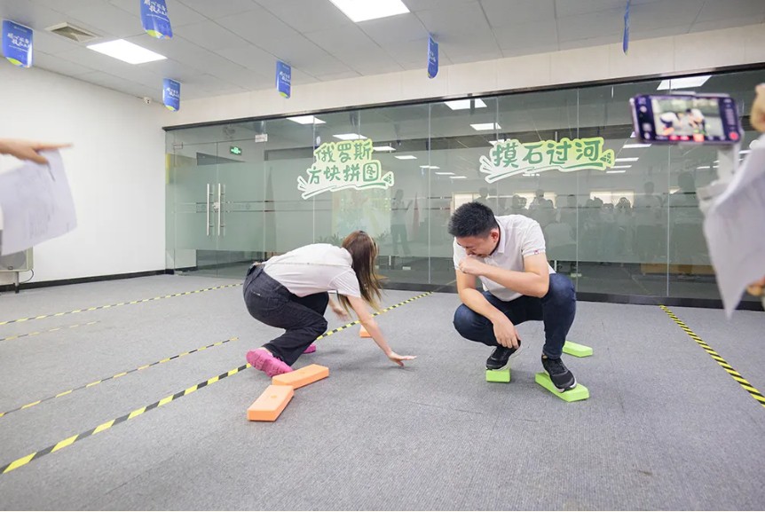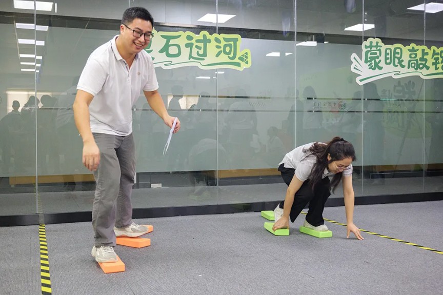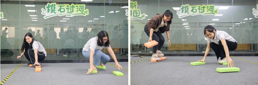 《摸石頭過河》游戲則是一場趣味橫生的競賽。員工們共同跨越障礙,到達(dá)終點,感受到了團(tuán)隊協(xié)作的重要性。