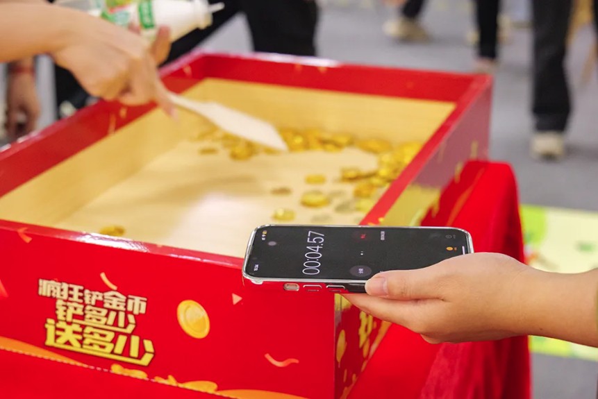 《鏟金幣》游戲則是新時代的游戲與傳統(tǒng)文化的完美結(jié)合。大家奮力鏟起地上的金幣,感受著金燦燦的喜悅。