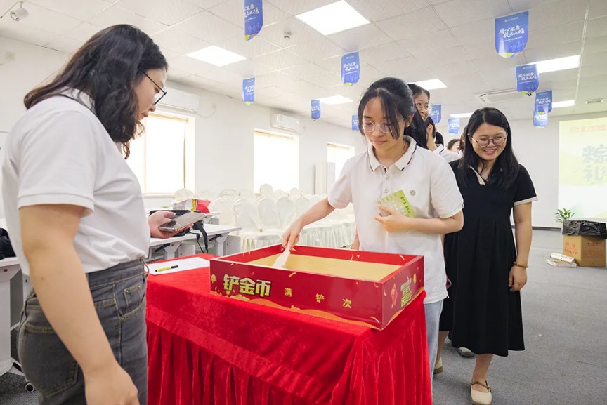 活動現(xiàn)場,投壺、鏟金幣、蒙眼敲鑼、真人版拼圖、摸石頭過河等游戲吸引了眾多員工的熱情參與,讓大家體驗了古代投壺的神秘趣味,也感受到了新時代游戲與傳統(tǒng)文化的碰撞。