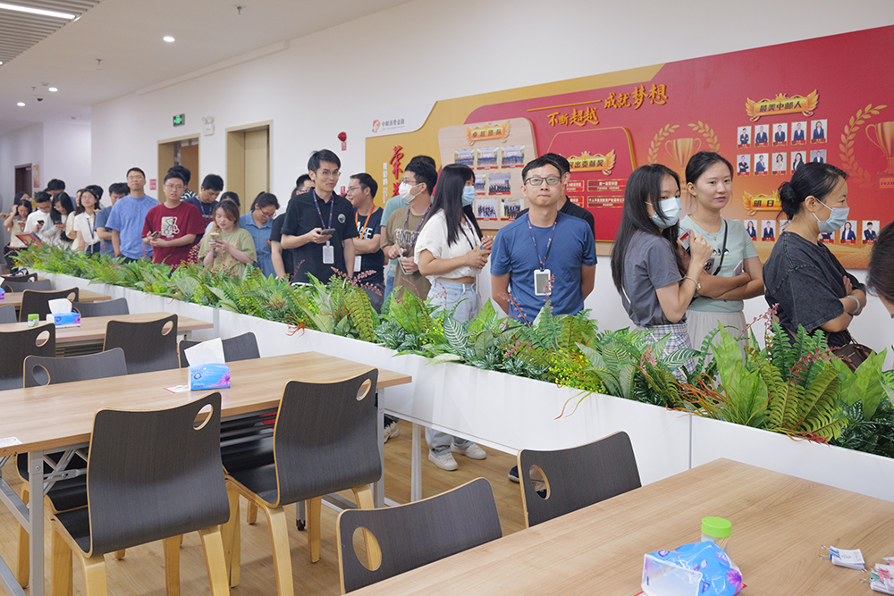 職工們有序領(lǐng)取美食后,圍坐在餐桌旁,品嘗著美食,臉上洋溢著滿足和幸福的笑容。他們相互分享著美食的故事,食堂內(nèi)彌漫著溫馨愉快的氛圍。