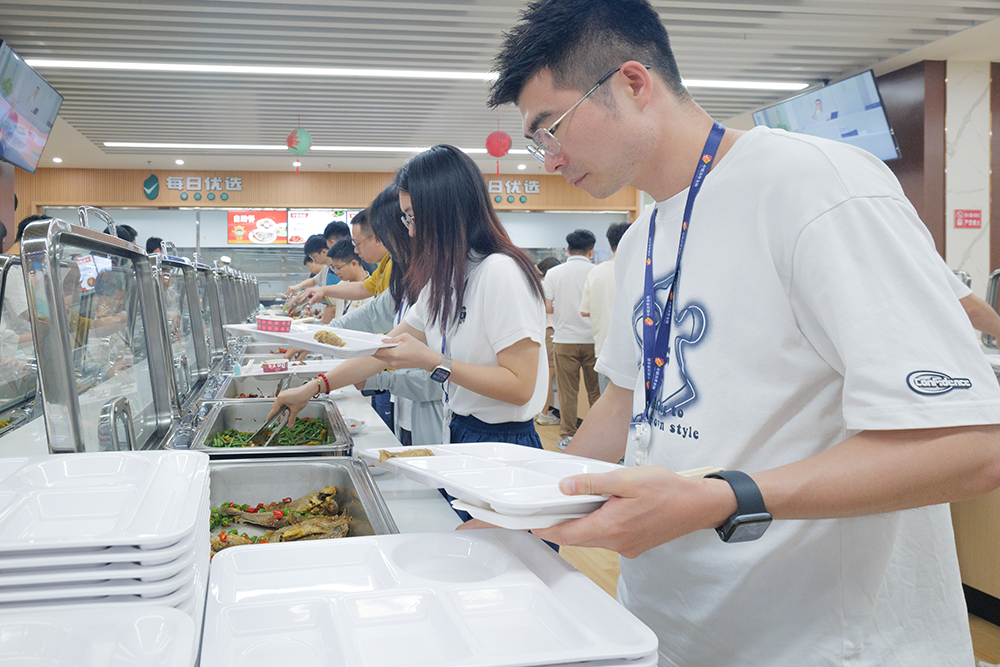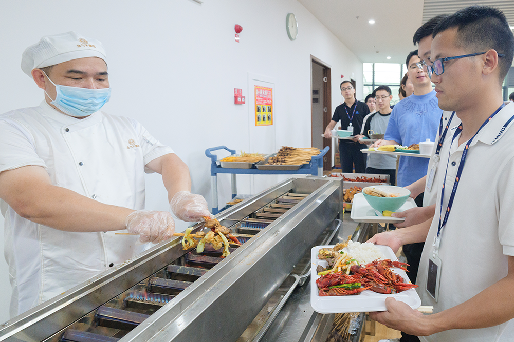 現(xiàn)場金勺子團餐749門店食堂開設(shè)自助餐區(qū)、特色檔口區(qū)等,提供多樣化的選擇,每一道菜都經(jīng)過精心烹飪,每一道菜的制作都充滿了熱情和匠心。