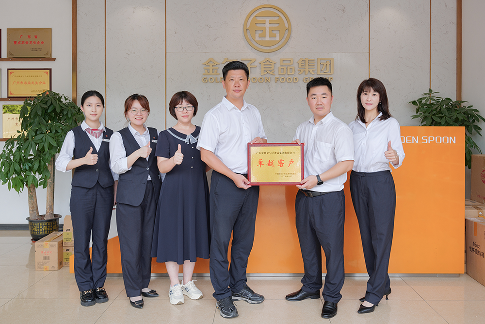 2024年8月22日,中國銀行廣州遠洋明苑支行行長楊奕平、副行長廖玉瓊攜團隊蒞臨金勺子食品集團考察,并授予金勺子食品集團“卓越客戶”榮譽牌匾,以表彰其在銀行業(yè)務(wù)合作中的優(yōu)秀表現(xiàn)。金勺子食品集團董事長黃金盾、集團財務(wù)總監(jiān)史佑萍熱情接待了楊奕平行長一行。